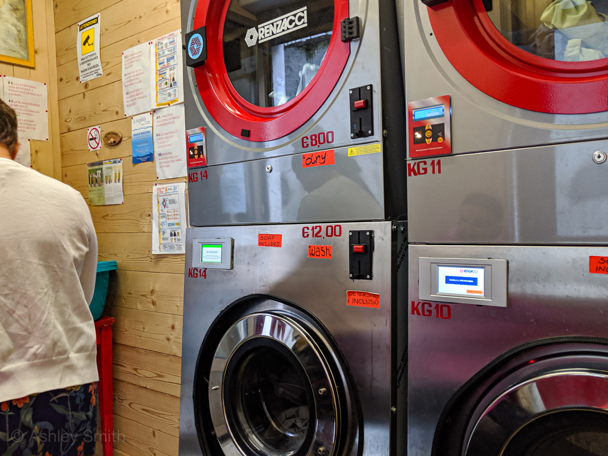 Keep in mind that these laundromats are small and everyone and their mother on the TMB wants to do their laundry. If you have outdoor space to dry your clothes, maybe just wash them at the laundromat and hang them up in your room to dry. If you don’t have time for them to air dry, maybe wash them in your sink and take them to the laundromat to dry.