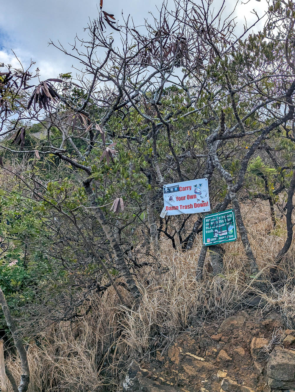 Given the popularity of this trail locally, the Koko Head railway hike tends to be super crowded. (There are even tour groups that will take you here!) And all with the sweatiest, grossest hikers you’ve ever met. I spoke with many locals who use the Koko Head stairs as their daily/weekly workout. One woman (who struggled to put one foot in front of the other) says she does it every Sunday. I also saw several active duty military running up and down the trail with weighted vests on.