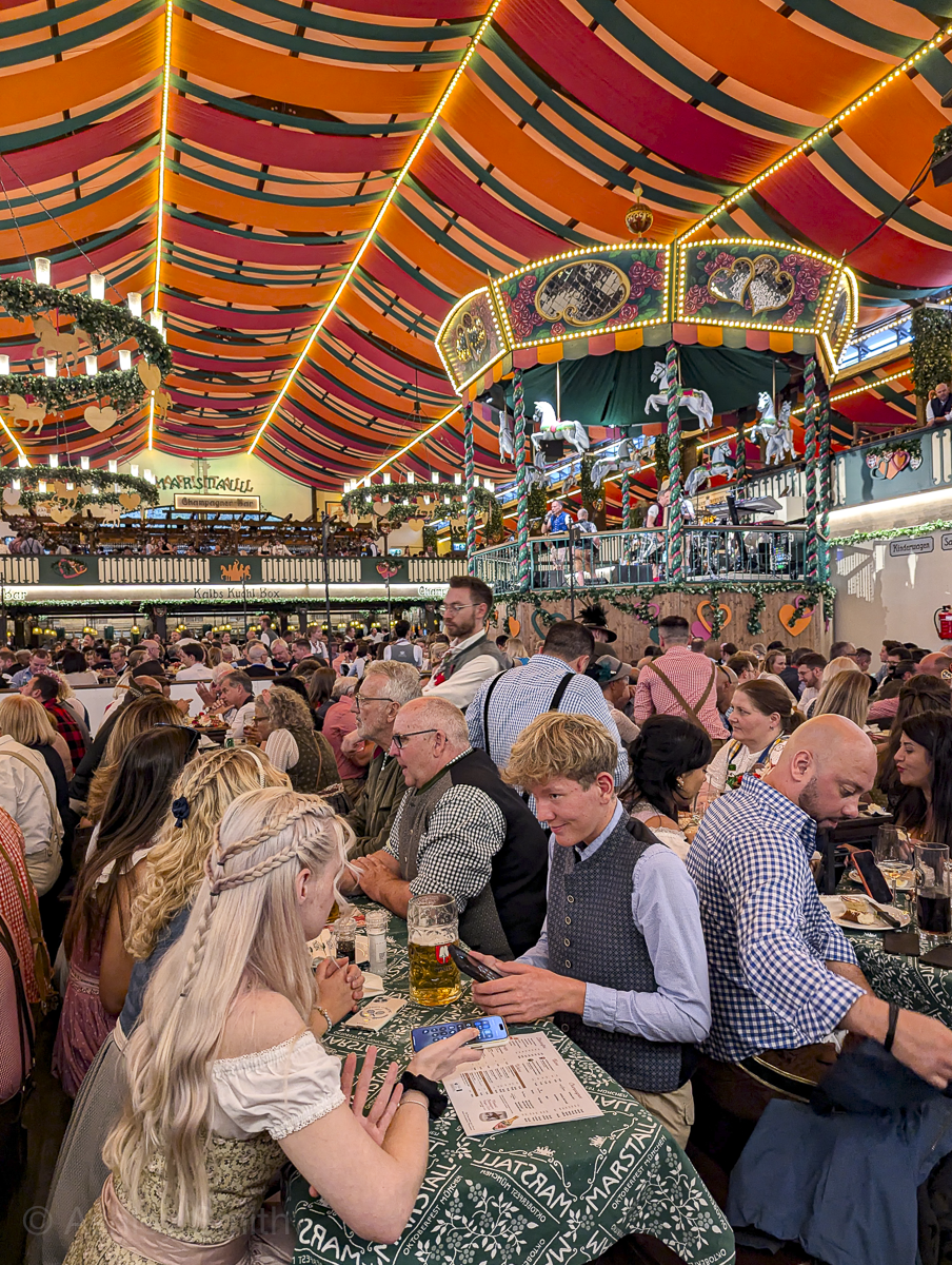 The Marstall tent is one of the youngest tents at Oktoberfest having opened only in 2014. It has a pretty obvious horse and carousel theme and is known as one of the “posh” tents at Oktoberfest. It’s the first tent you’ll come to when you enter the festival grounds.