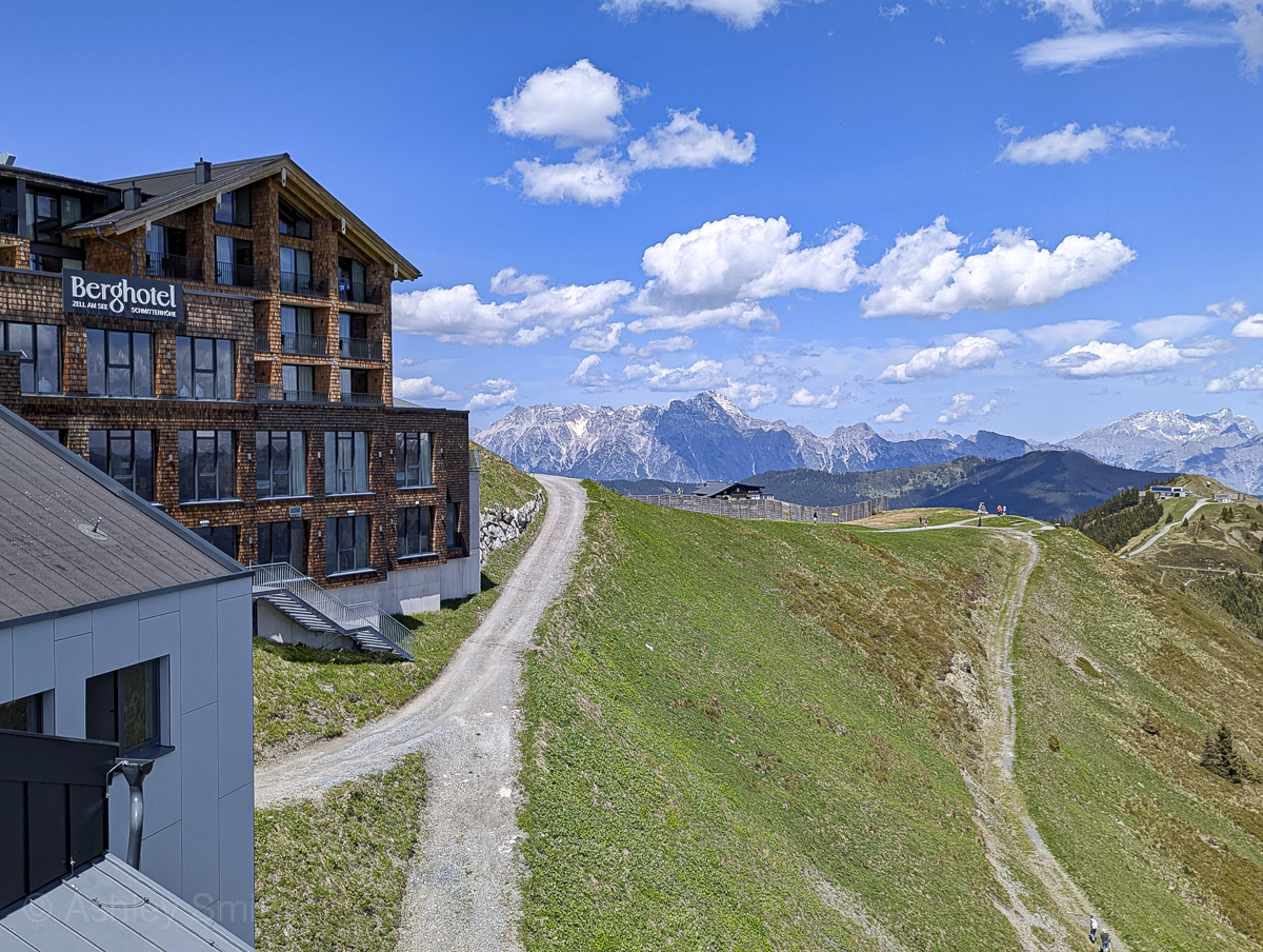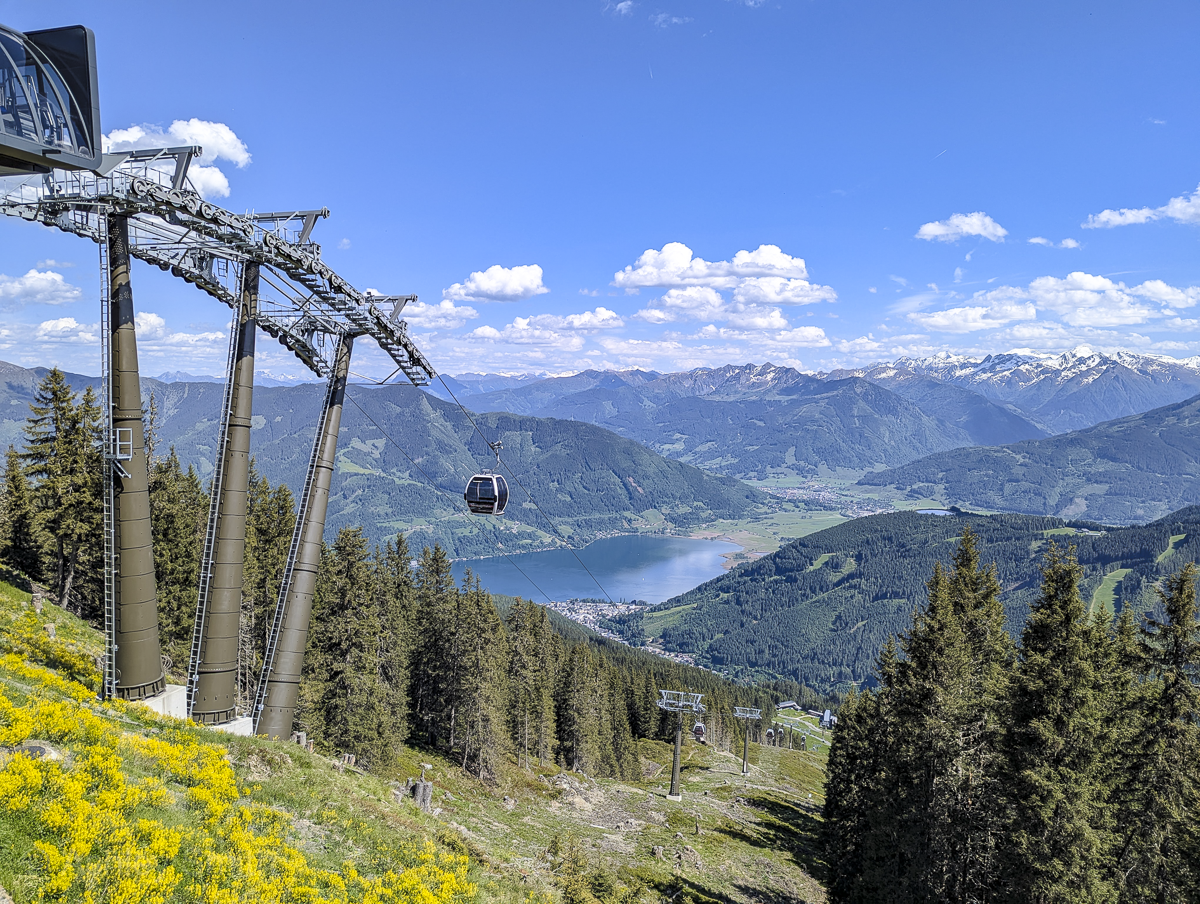 The Schmittenhöhe is a mountain in the Austrian Alps that rises above the town (and lake) of Zell am See. At 1,965m (6,446’) elevation, it’s a relatively “small” mountain but one that’s perfect for year-round outdoor adventures. The Schmittenhöhe is most popular for winter sports, but in the summer offers a ton of great hiking trails and jumping off points for paragliders.