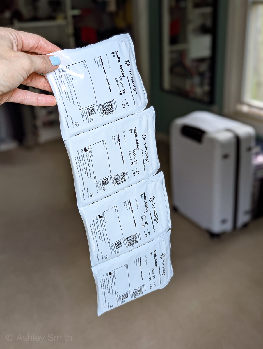 One thing that really helped me while traveling with Invisalign was writing the dates on the envelopes of when I was supposed to change them. I don’t know about you, but I tend to lose track of days/dates while I’m traveling, so this helped to keep me on schedule.