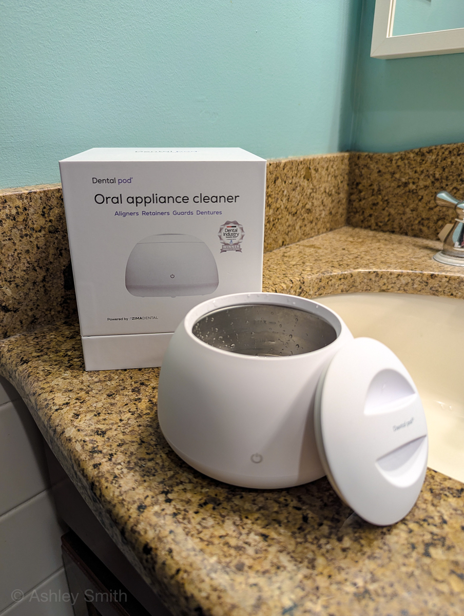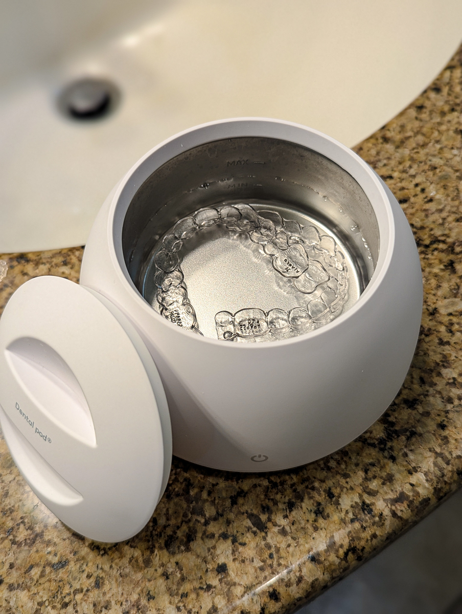 But when I got my retainer, I knew I’d have to keep it in tip-top shape for a long time so I finally got an ultrasonic cleaner. And I am so pissed I didn’t do this from day one! These things use sound waves and water only to clean the aligners and it’s quick, effortless, effective, and causes no damage.